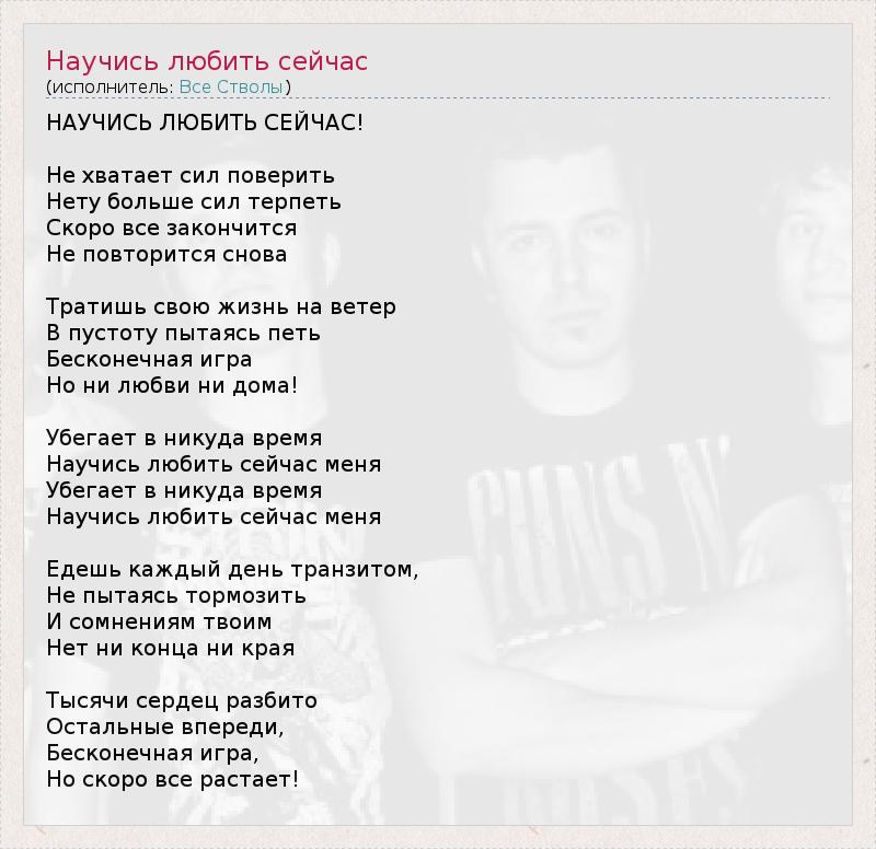 ГлавнаяИсполнителиВсе СтволыНаучись любить сейчас