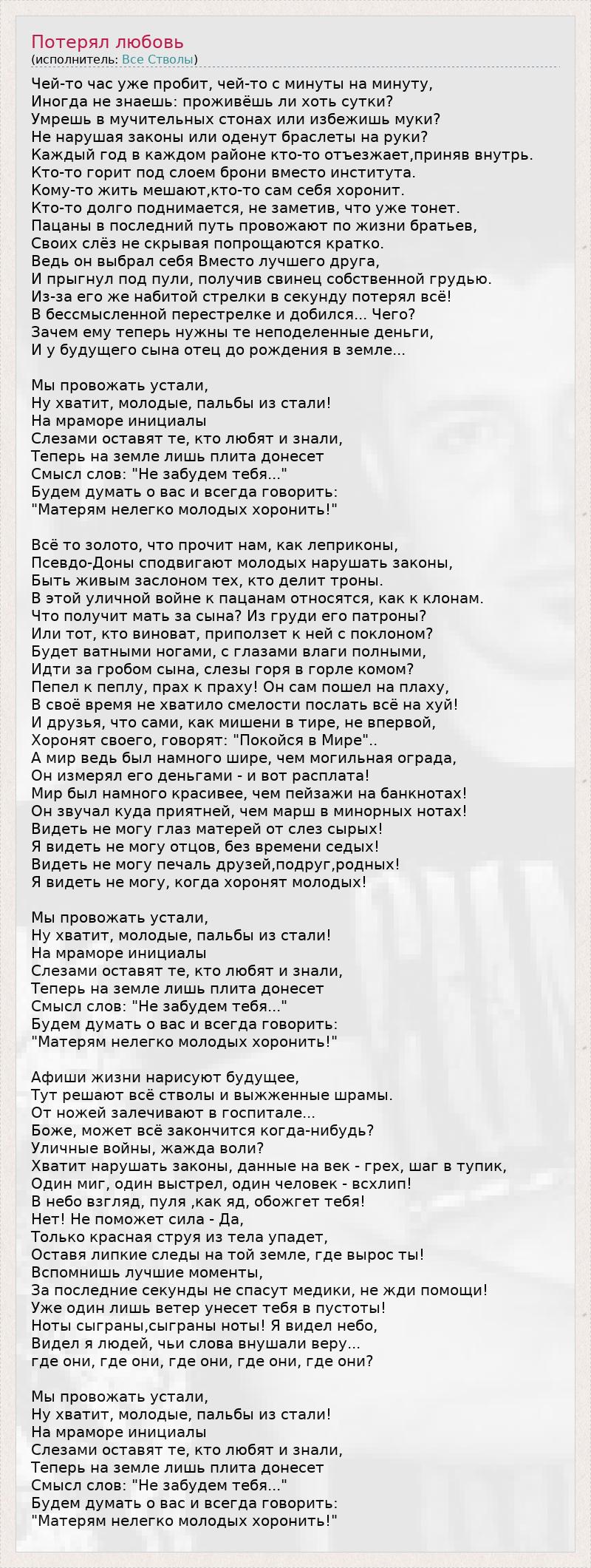 А как ты думаешь, о чем песня "Потерял любовь" ?