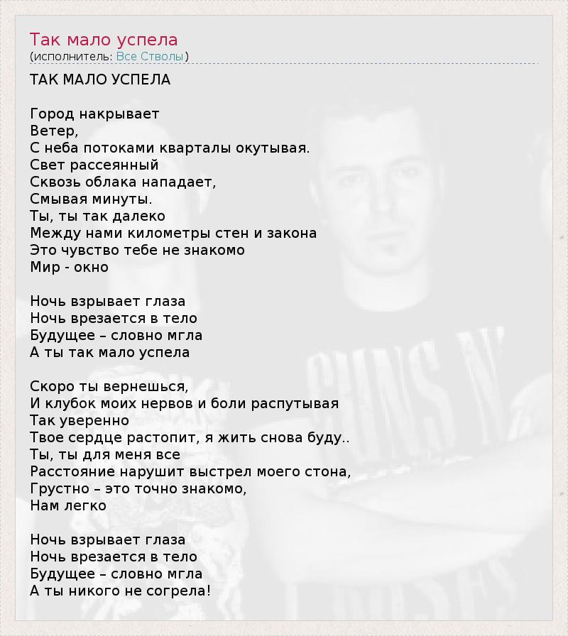ГлавнаяИсполнителиВсе СтволыТак мало успела