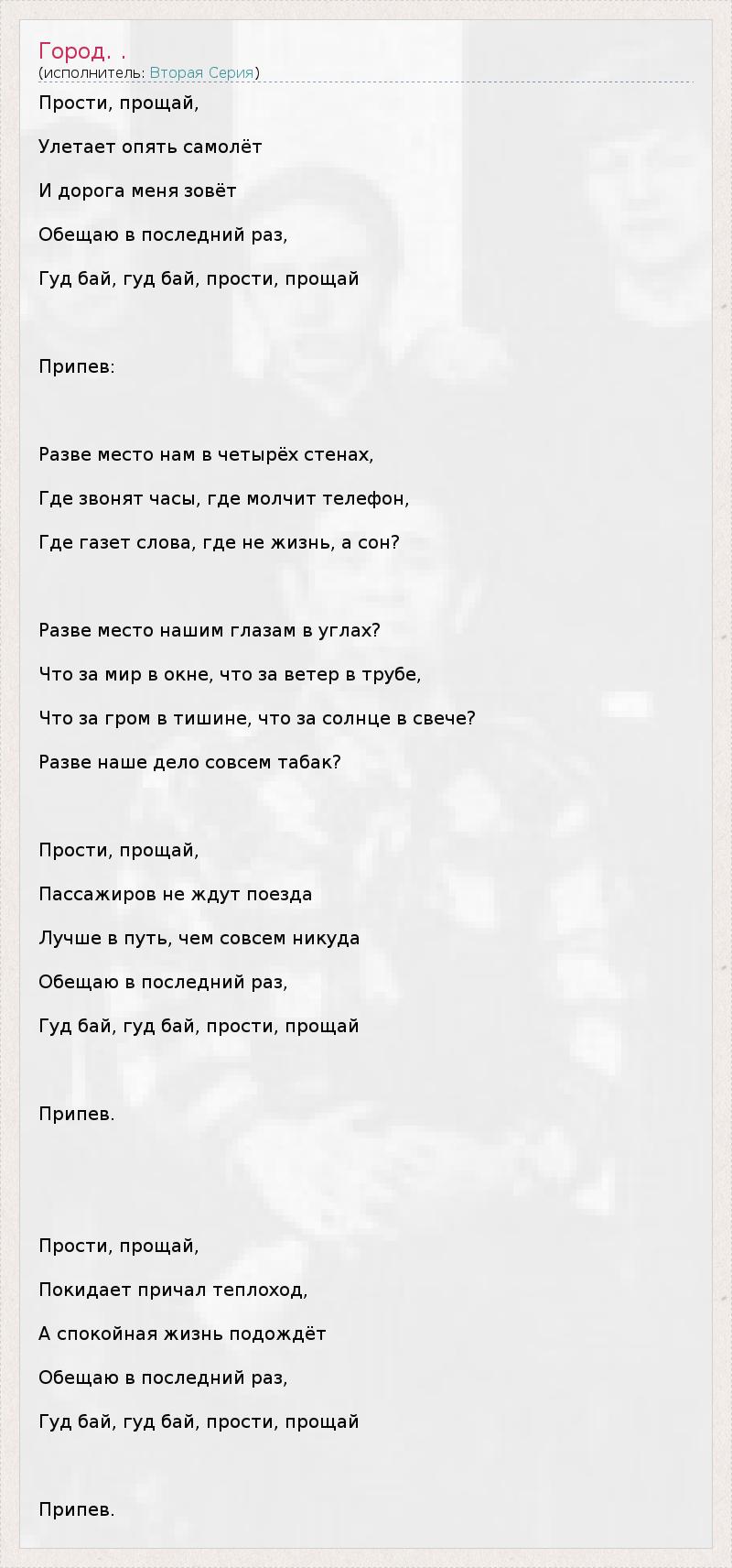 Это интересно:Группа "Вторая Серия" родилась в 1992 году в городе Новокузнецк. Хотя как таковой группы не должно было быть изначально, её создание не намечалось, и не планировалась. Был только проект записи 45 минутного концерта посвящённого памяти легендарного Виктора Цоя, и всё. Виктор Шевченко (Тор-Ше) - основатель этого проекта был далёк от набора какой-то постоянной музыкальной команды и далеко... продолжение