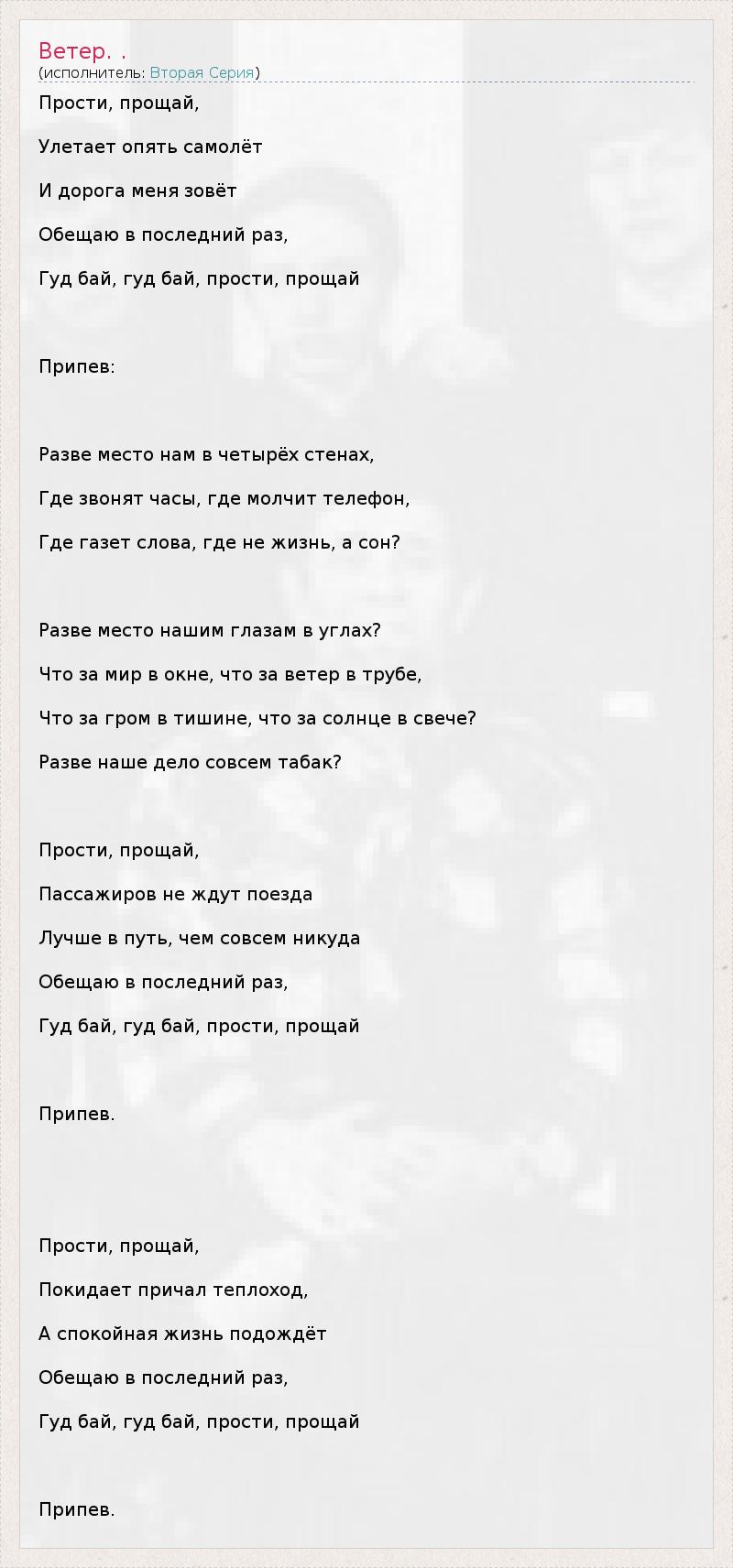 Гуд бай, гуд бай, прости, прощай