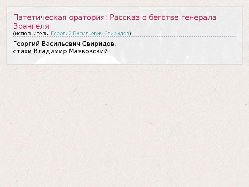 Главная→Исполнители→Георгий Васильевич Свиридов→Патетическая оратория: Рассказ о бегстве генерала Врангеля