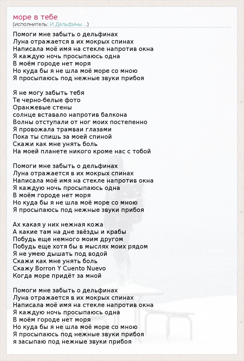 А как ты думаешь, о чем песня "море в тебе" ?