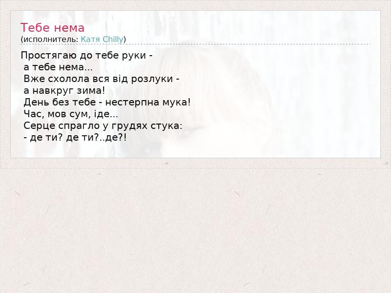 А как ты думаешь, о чем песня "Тебе нема" ?