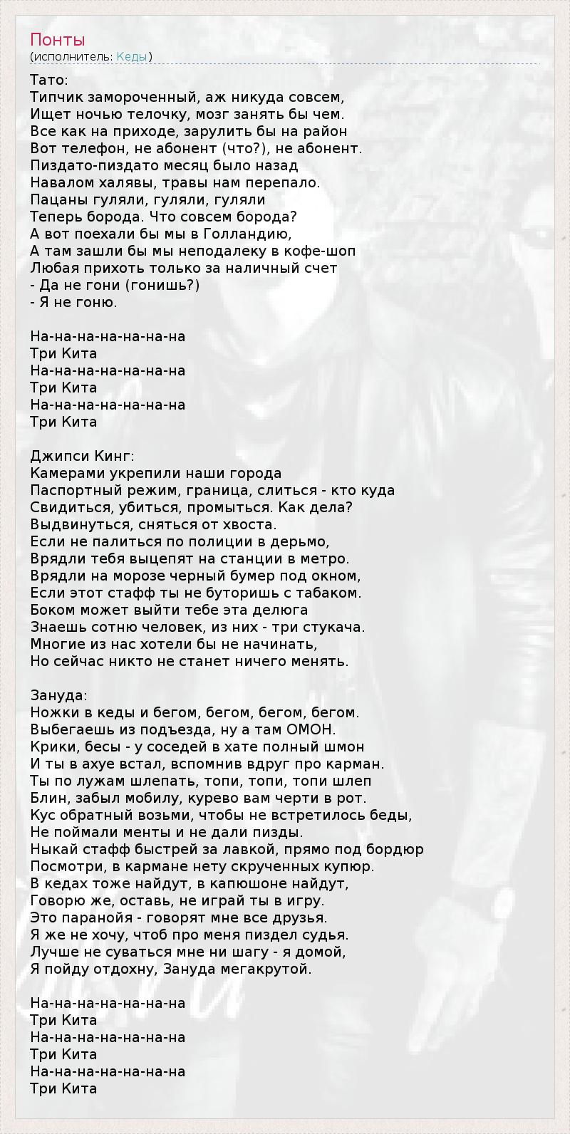 Это интересно:Группа Кеды образовалась в 1999г.Не смотря на то что некоторые из песен, были написаны ещё в середине 80-х годов,участники группы решили считать днём своего основания 15 июня 1999года,именно тогда заработал официальный сайт группы.Идея создания группы играющей поп-рок,принадлежит гитаристу и вокалисту Вячеславу Качину больше известному как просто Славец.За время своего существования группа... продолжение