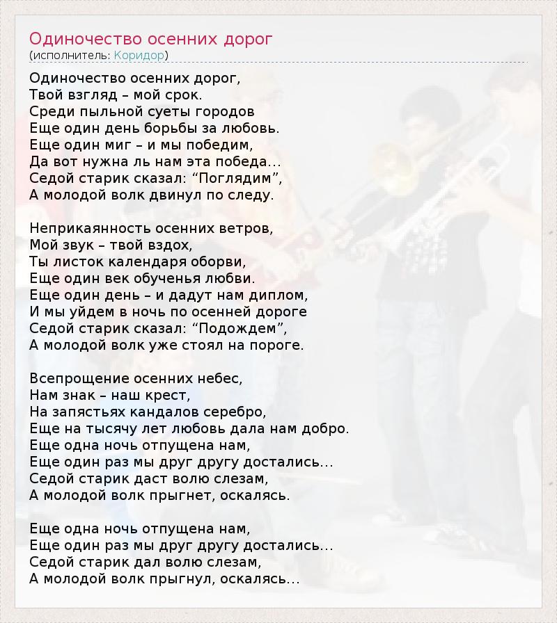 ГлавнаяИсполнителиКоридорОдиночество осенних дорог