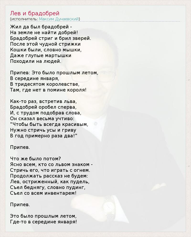 А как ты думаешь, о чем песня "Лев и брадобрей" ?