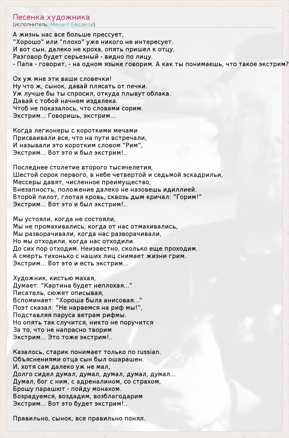 ГлавнаяИсполнителиМихаил БашаковПесенка художника