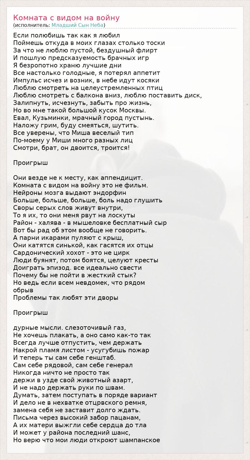 ГлавнаяИсполнителиМладший Сын НебаКомната с видом на войну