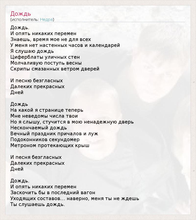 А как ты думаешь, о чем песня "Дождь" ?