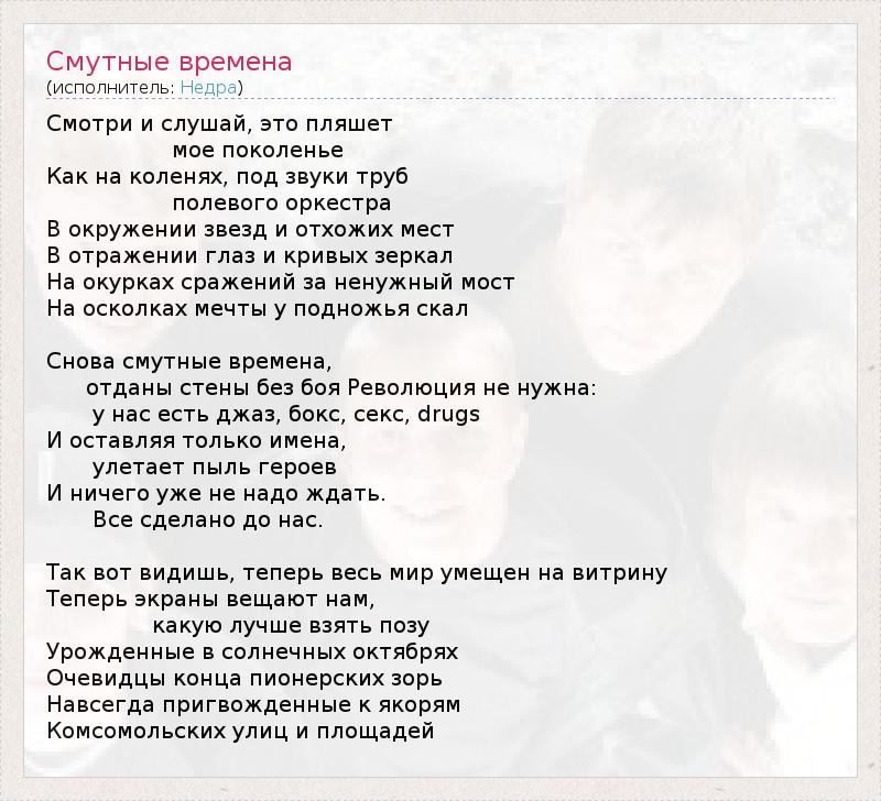 А как ты думаешь, о чем песня "Смутные времена" ?