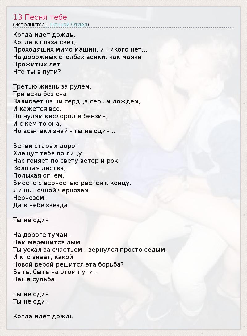 А как ты думаешь, о чем песня "13 Песня тебе" ?