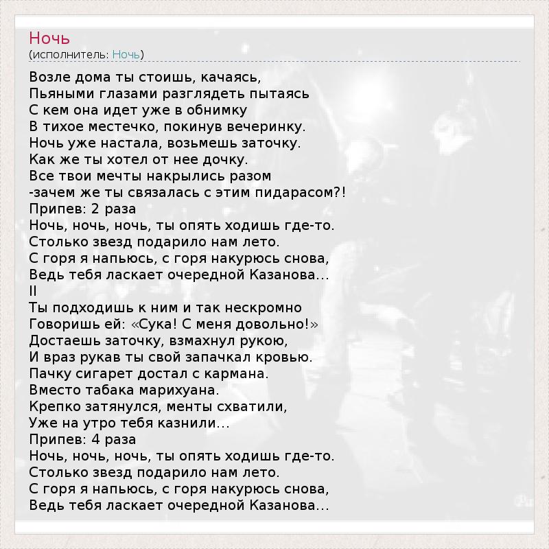 Ночь, ночь, ночь, ты опять ходишь где-то.