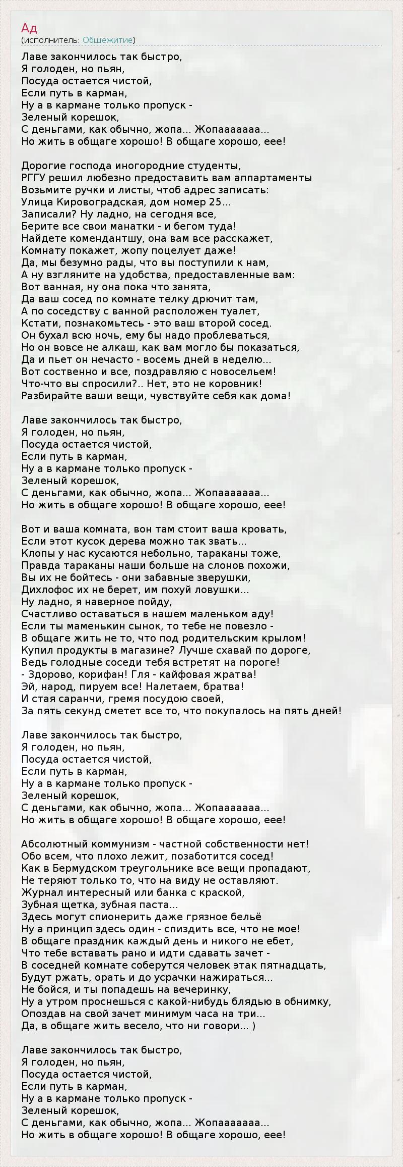 Но жить в общаге хорошо! В общаге хорошо, еее!