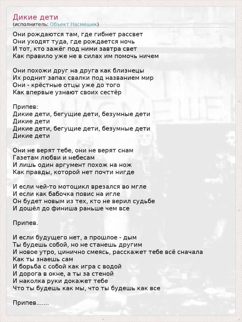 А как ты думаешь, о чем песня "Дикие дети" ?