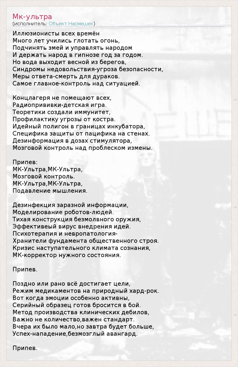 А как ты думаешь, о чем песня "Мк-ультра" ?