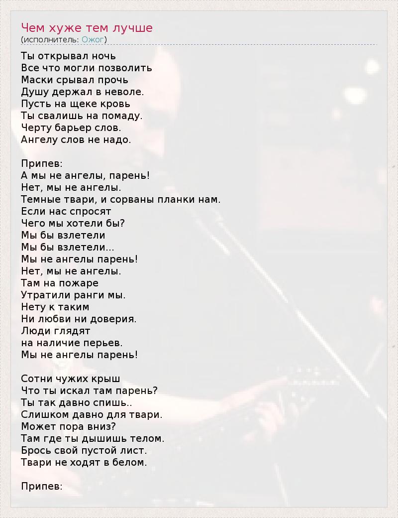 ГлавнаяИсполнителиОжогЧем хуже тем лучше