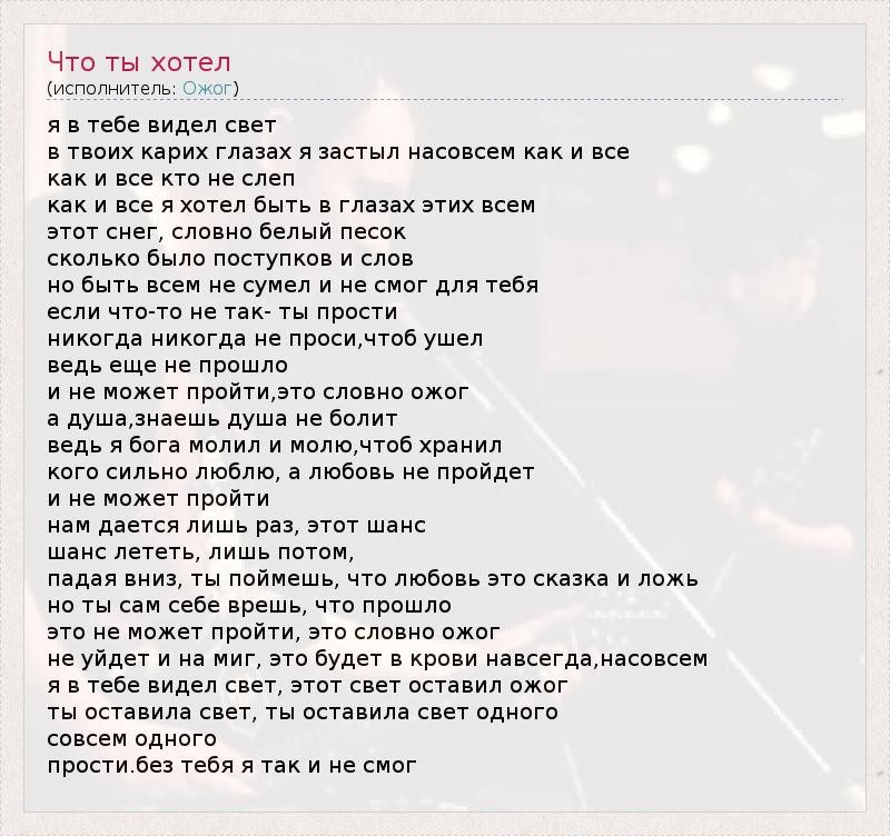 ГлавнаяИсполнителиОжогЧто ты хотел