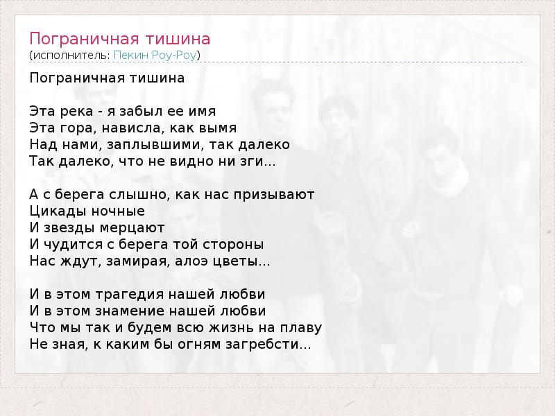 А как ты думаешь, о чем песня "Пограничная тишина" ?