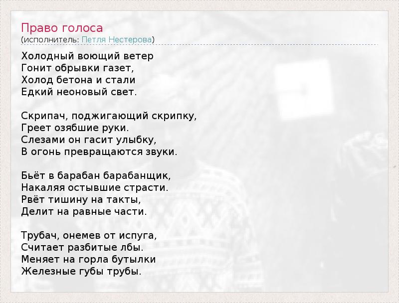 А как ты думаешь, о чем песня "Право голоса" ?