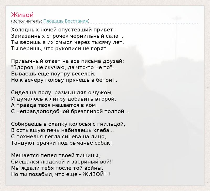 А как ты думаешь, о чем песня "Живой" ?