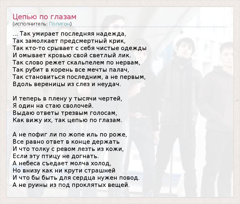 А как ты думаешь, о чем песня "Цепью по глазам" ?