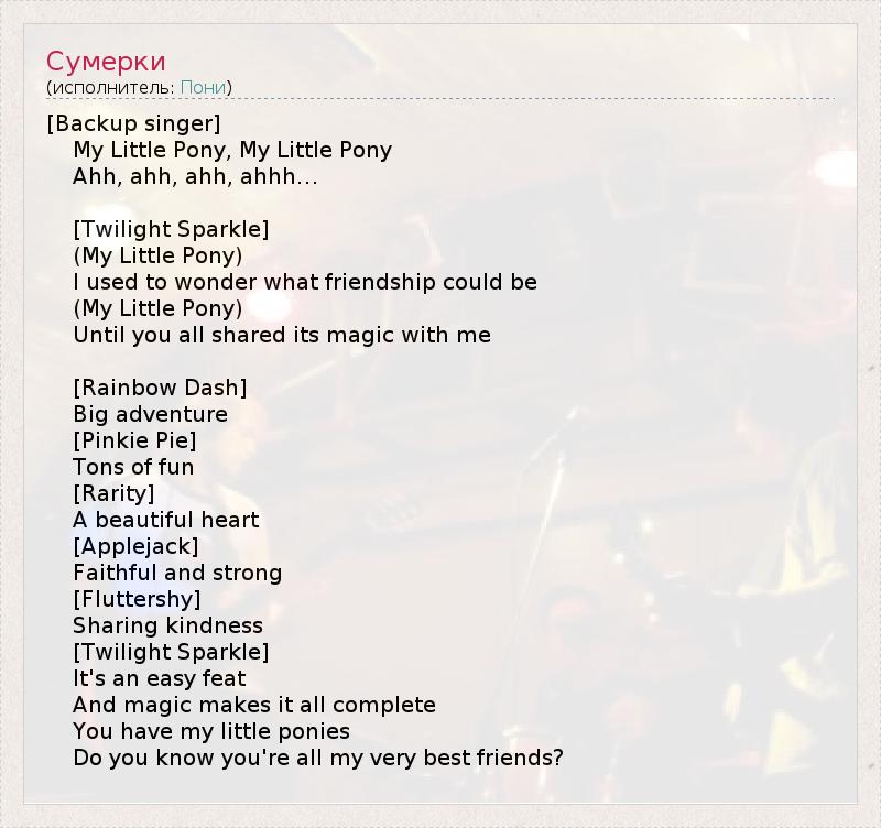 Это интересно:ПОНИ:Виктор Давыдов - басАлексей Пономарев - вокал, гитараАнна Шварц - барабаныАлексей Шмариович - гитараПоследний альбом ПОНИ называется Велотрек - его можно бесплатно скачать на www.ponyband.ru или на Last.fm.По вопросам организации концертов пишите на ponymoscow@gmail.com.