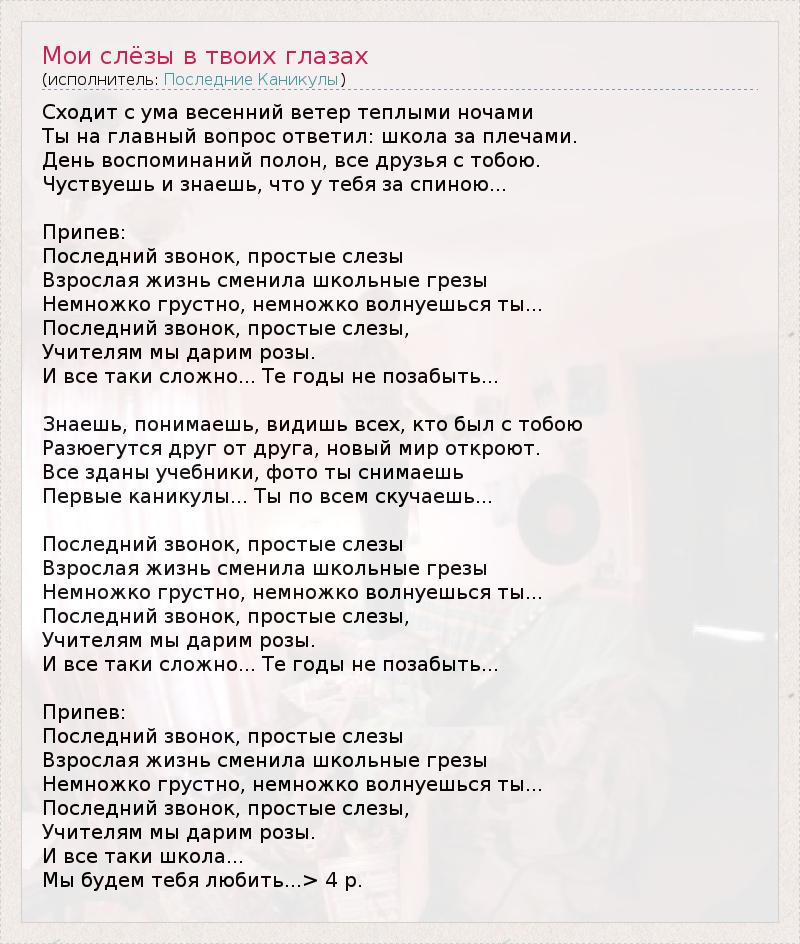 ГлавнаяИсполнителиПоследние КаникулыМои слёзы в твоих глазах