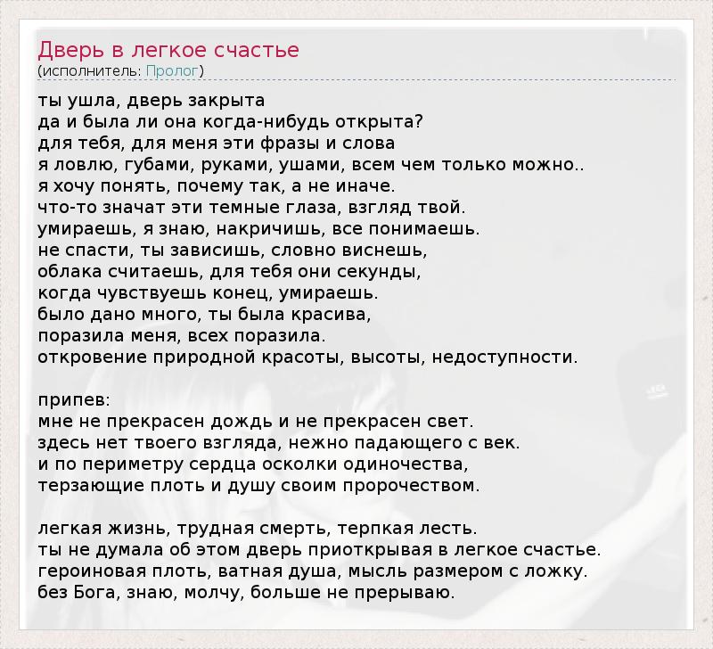 ты не думала об этом дверь приоткрывая в легкое счастье.