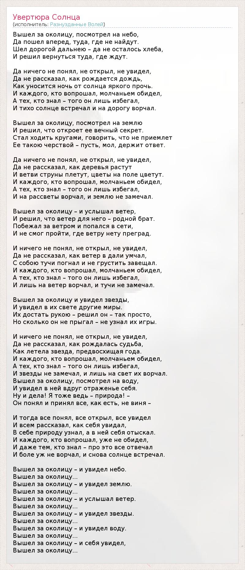 А как ты думаешь, о чем песня "Увертюра Солнца" ?