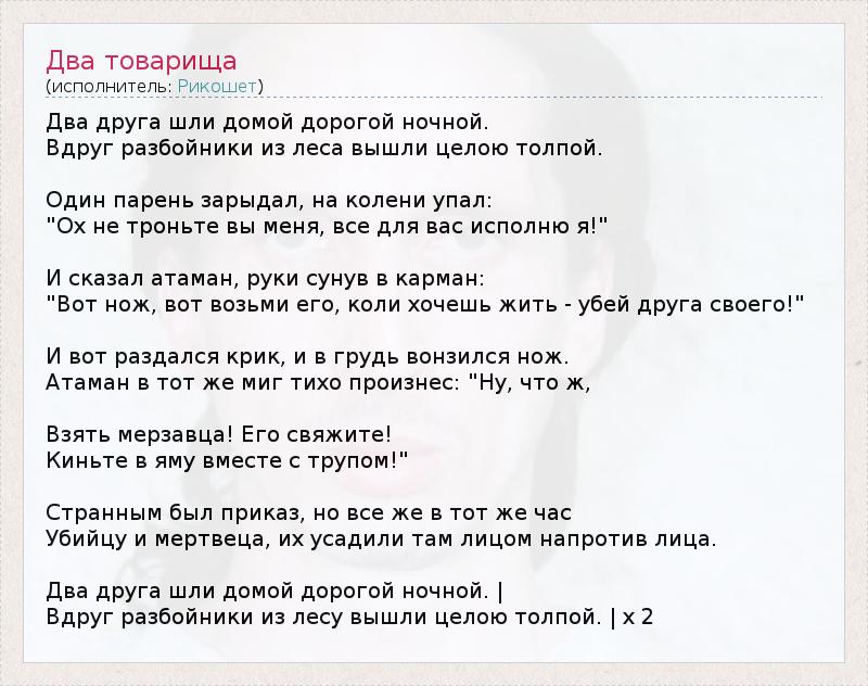 А как ты думаешь, о чем песня "Два товарища" ?