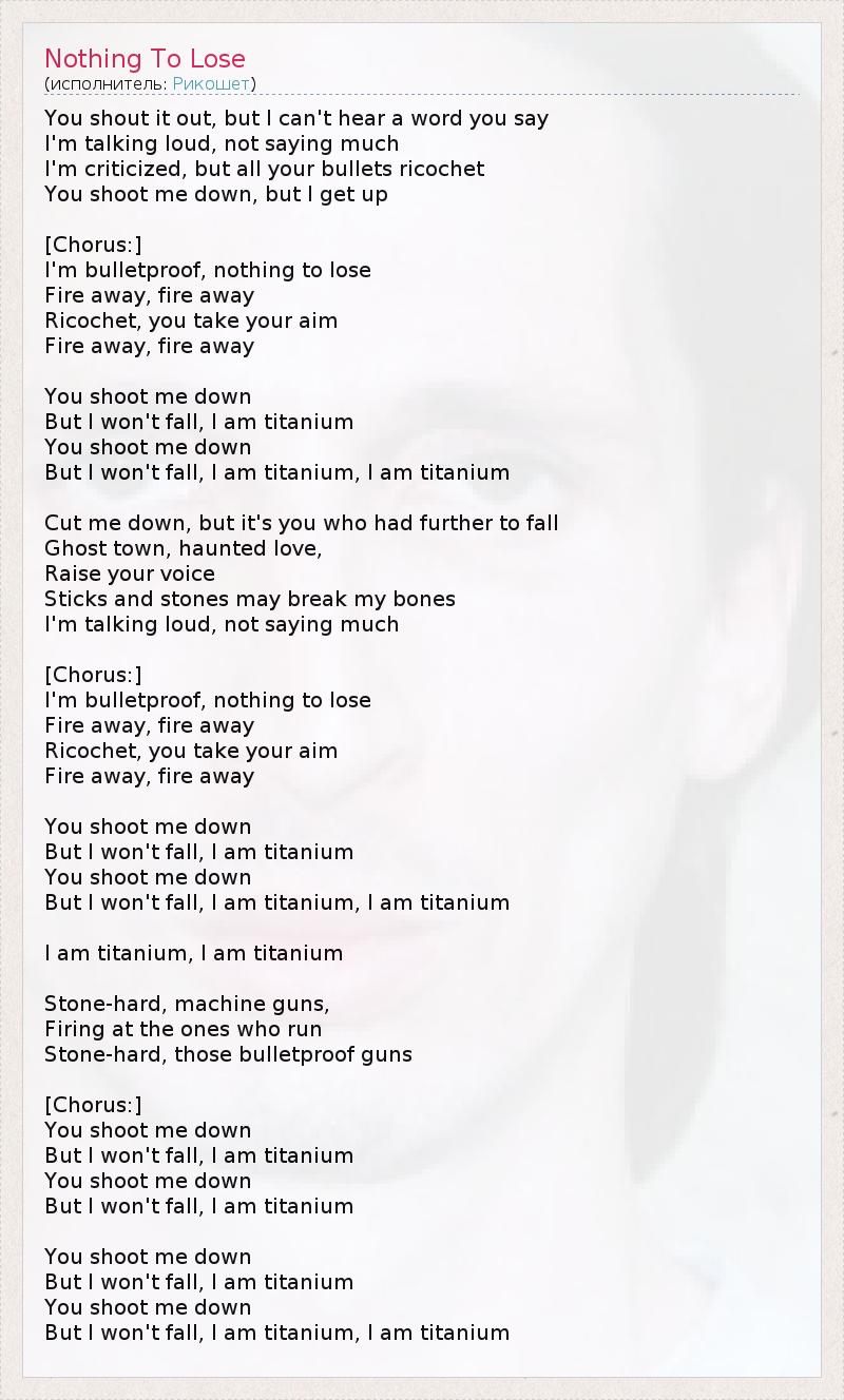 А как ты думаешь, о чем песня "Nothing To Lose" ?
