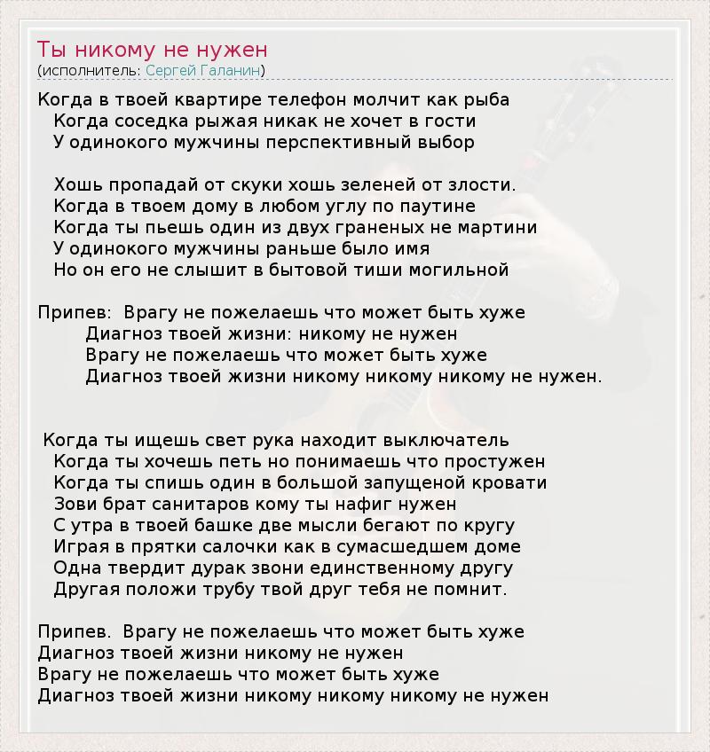 А как ты думаешь, о чем песня "Ты никому не нужен" ?