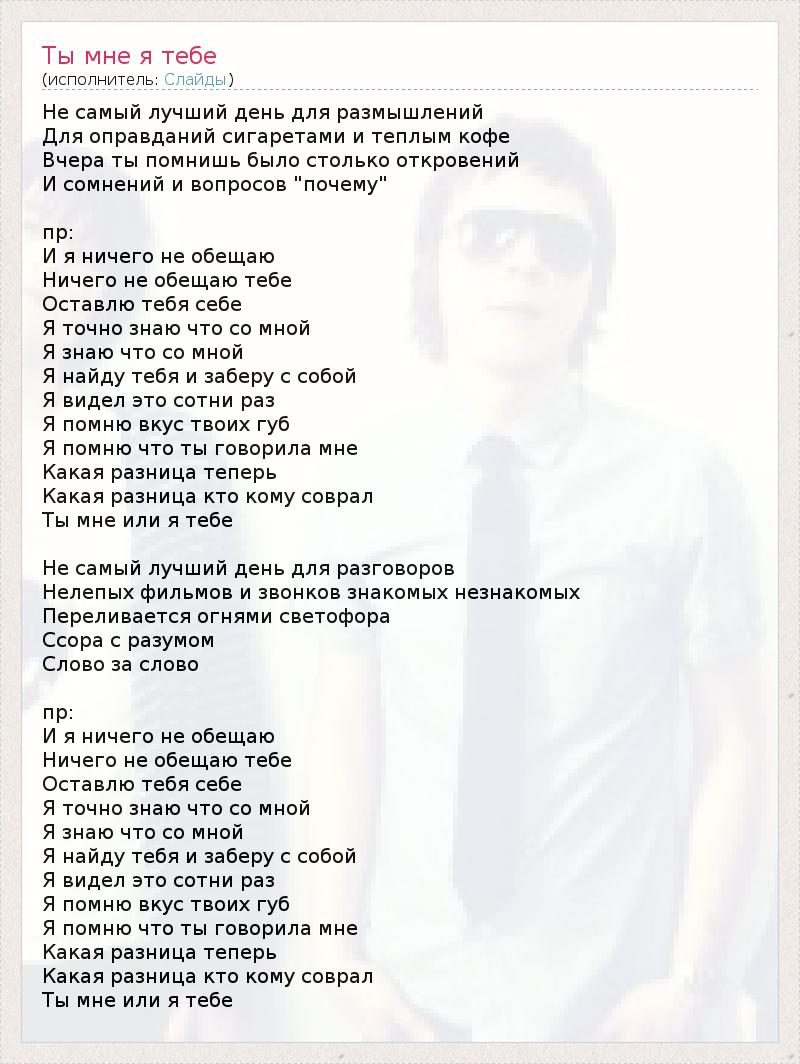 ГлавнаяИсполнителиСлайдыТы мне я тебе
