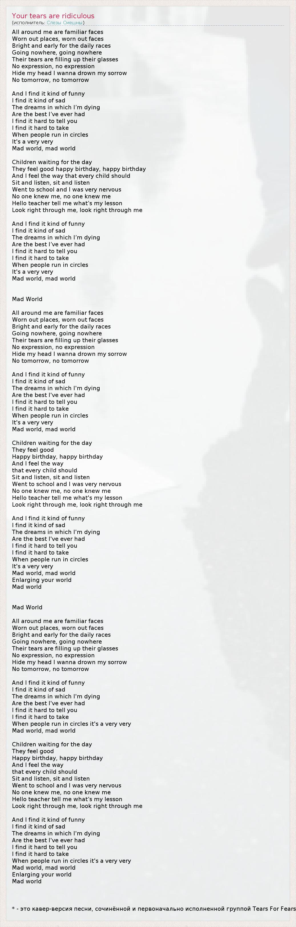 А как ты думаешь, о чем песня "Your tears are ridiculous" ?