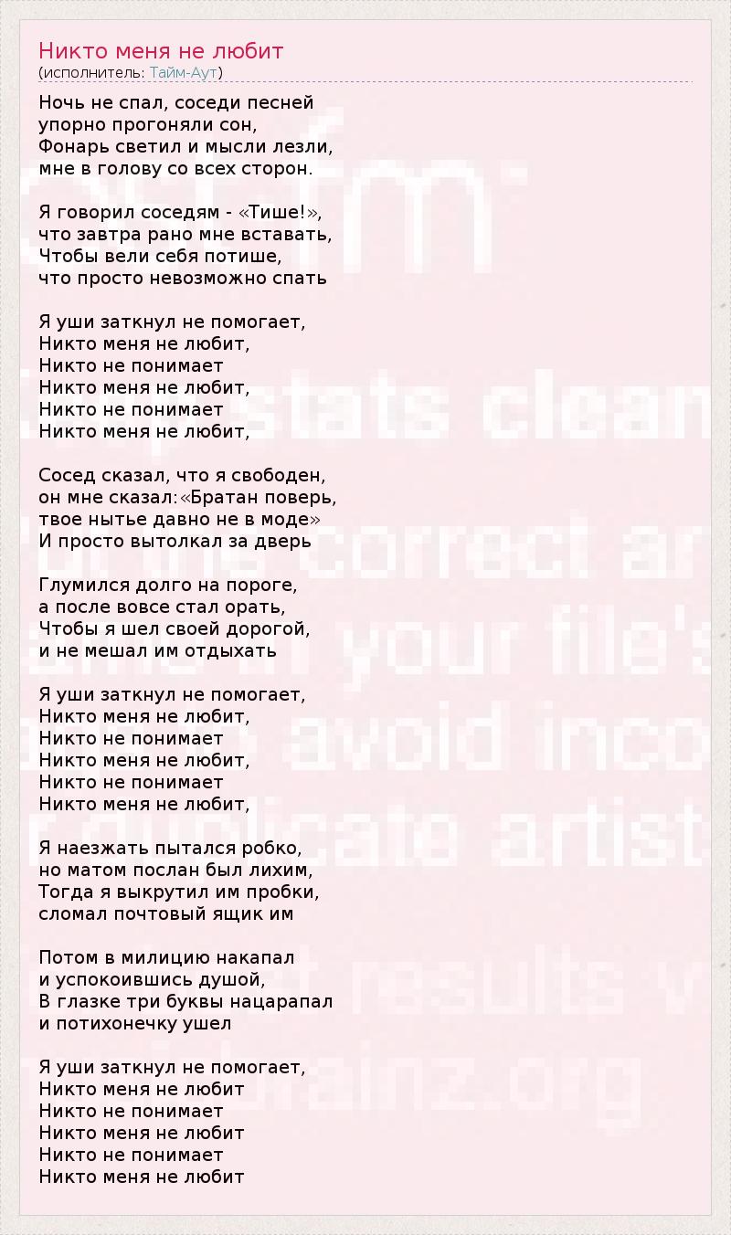 ГлавнаяИсполнителиТайм-АутНикто меня не любит