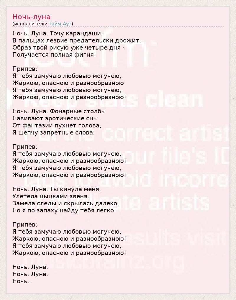 А как ты думаешь, о чем песня "Ночь-луна" ?