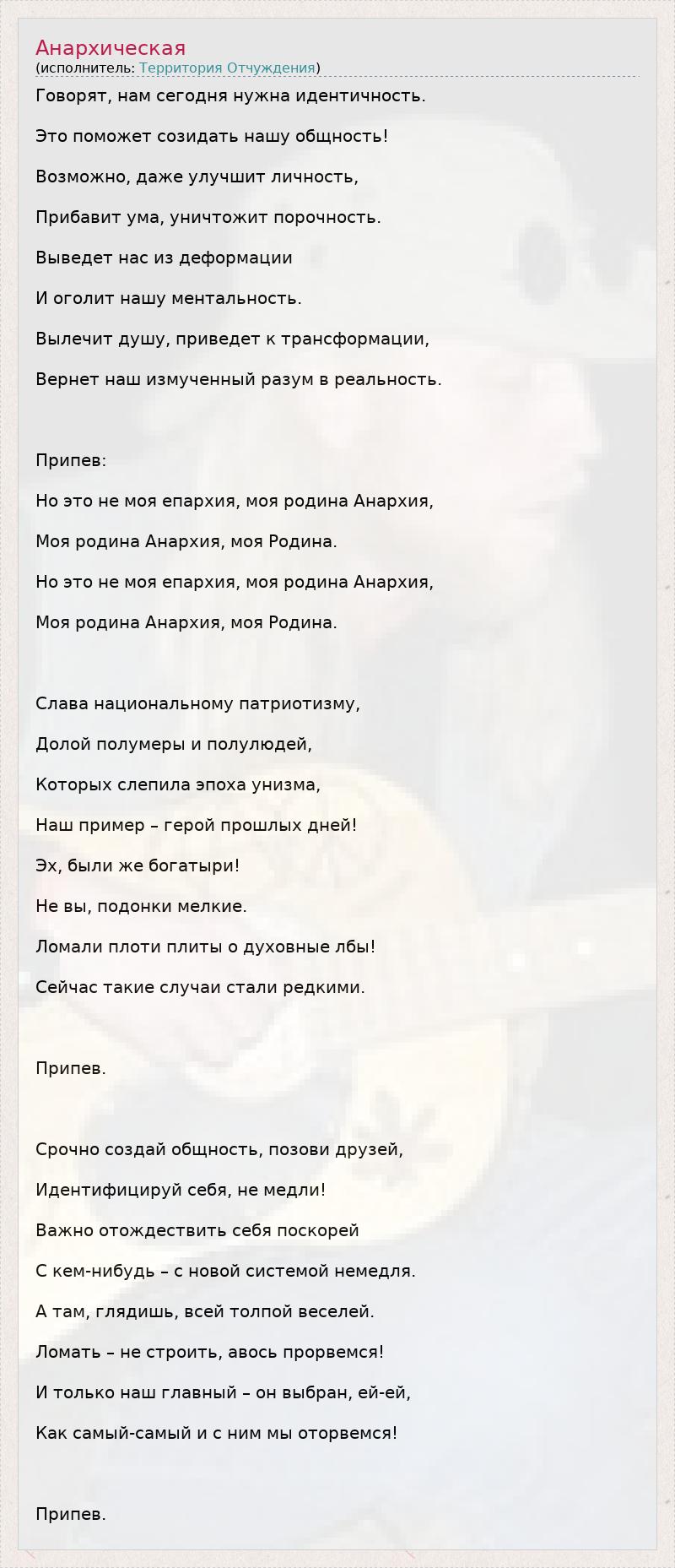 А как ты думаешь, о чем песня "Анархическая" ?