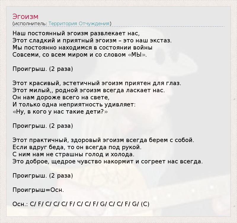 А как ты думаешь, о чем песня "Эгоизм" ?
