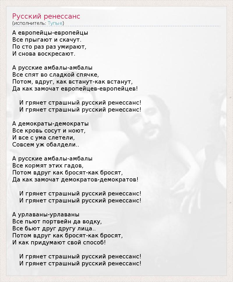 А как ты думаешь, о чем песня "Русский ренессанс" ?