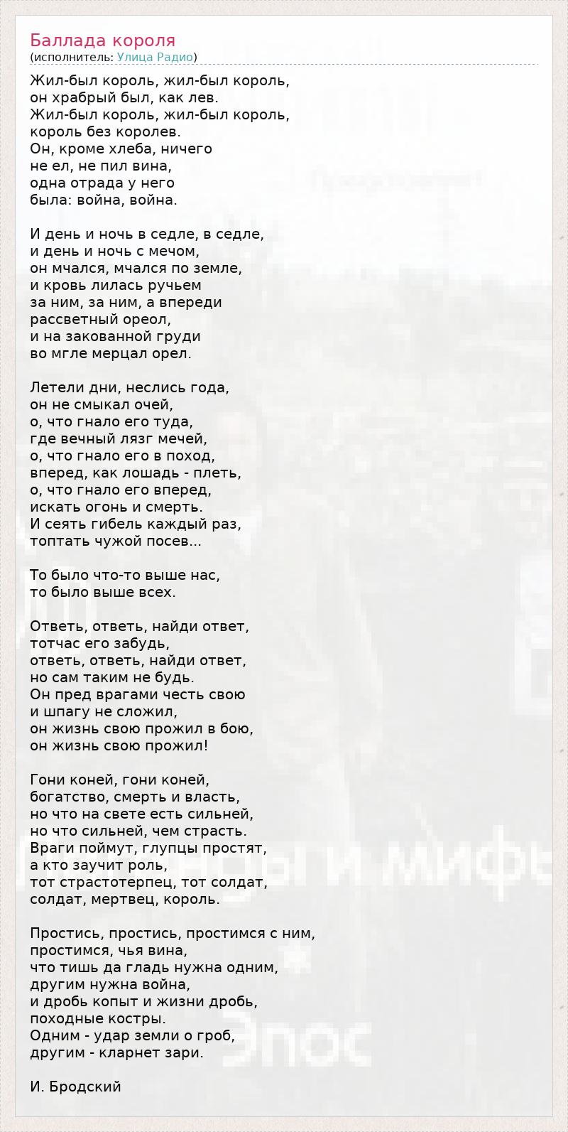 А как ты думаешь, о чем песня "Баллада короля" ?
