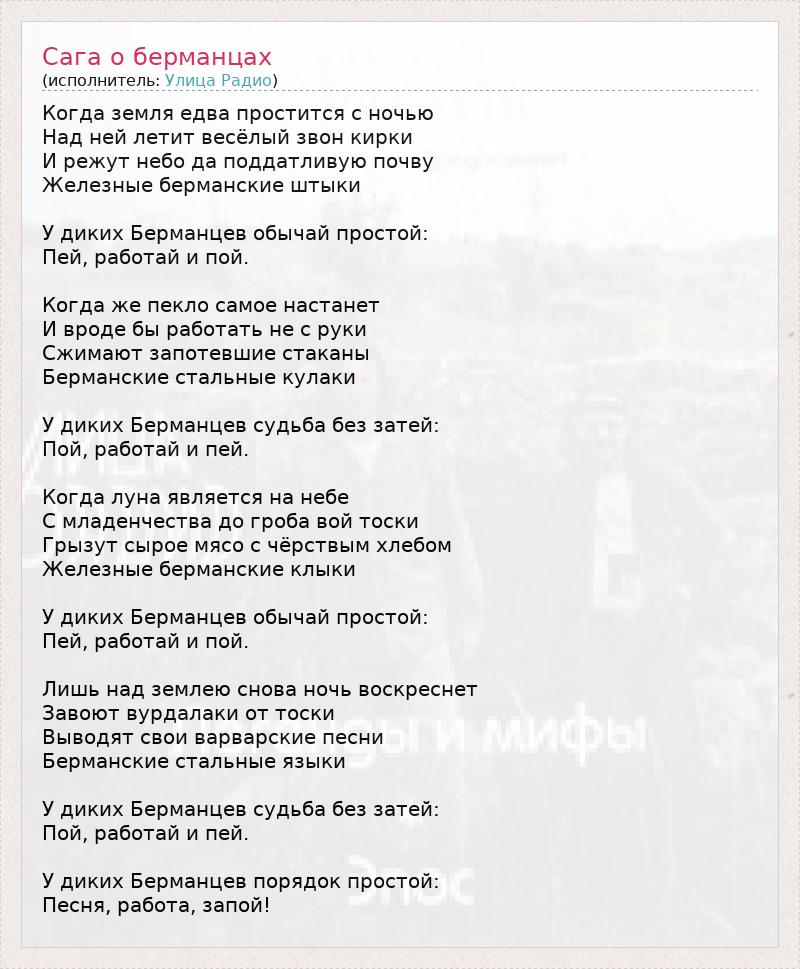 ГлавнаяИсполнителиУлица РадиоСага о берманцах