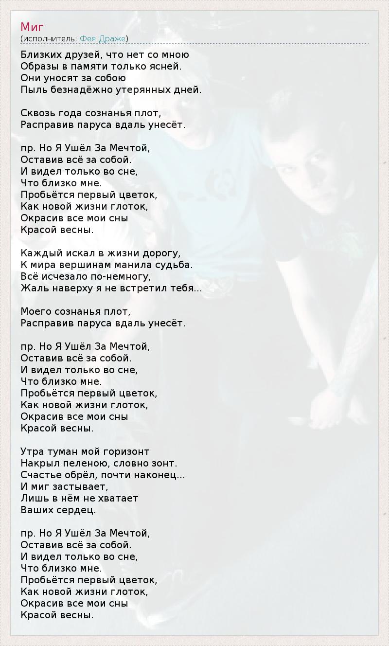 А как ты думаешь, о чем песня "Миг" ?