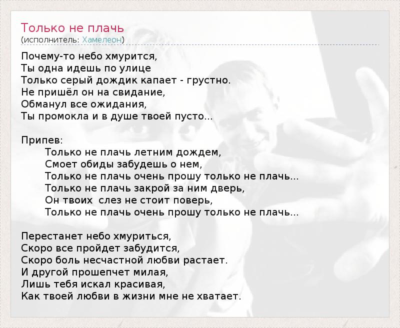 А как ты думаешь, о чем песня "Только не плачь" ?