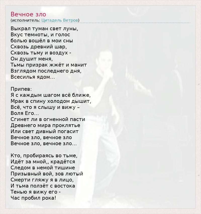 А как ты думаешь, о чем песня "Вечное зло" ?
