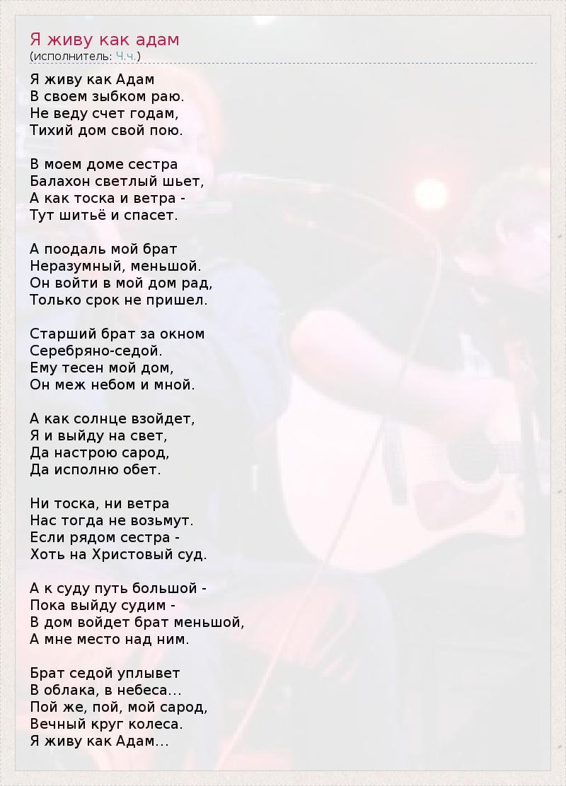 ГлавнаяИсполнителиЧ.ч.Я живу как адам