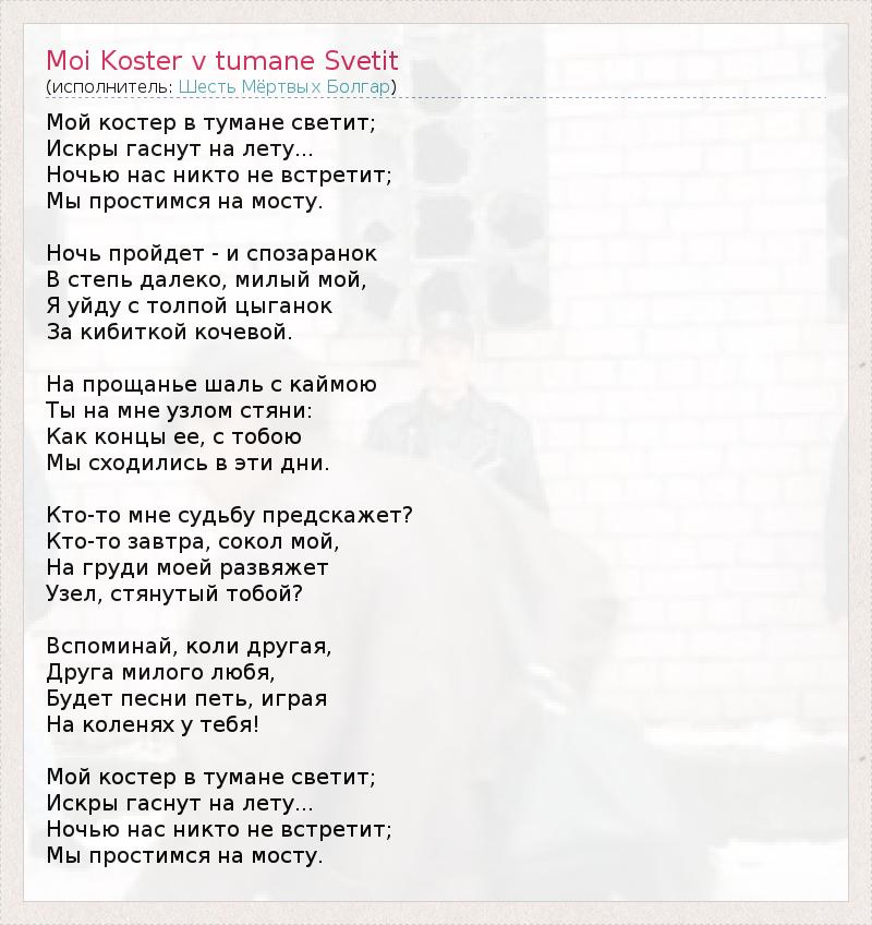 А как ты думаешь, о чем песня "Moi Koster v tumane Svetit" ?