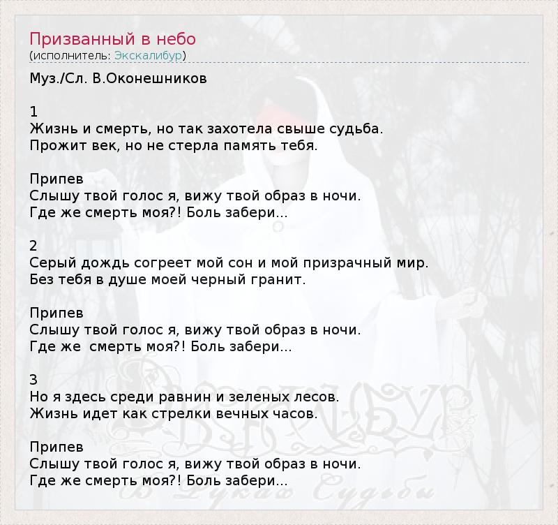ГлавнаяИсполнителиЭкскалибурПризванный в небо