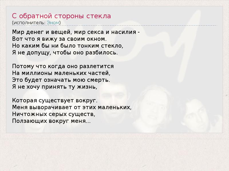 А как ты думаешь, о чем песня "С обратной стороны стекла" ?