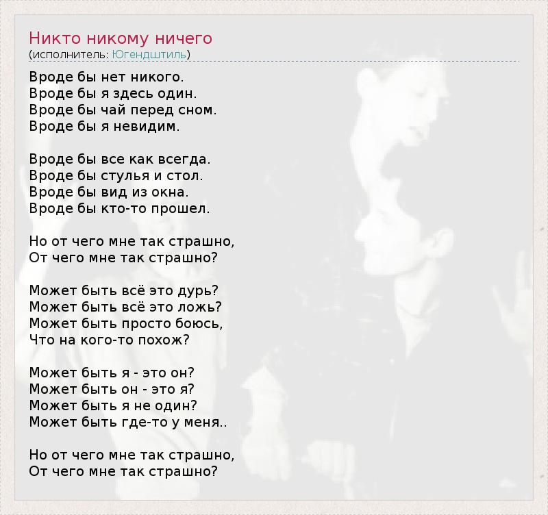 ГлавнаяИсполнителиЮгендштильНикто никому ничего